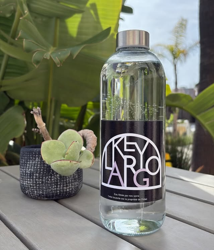 Dans une démarche à la fois écologique et qualitative, notre hôtel met désormais à disposition dans chaque chambre des bouteilles en verre d’eau filtrée, préparées directement par nos équipes.